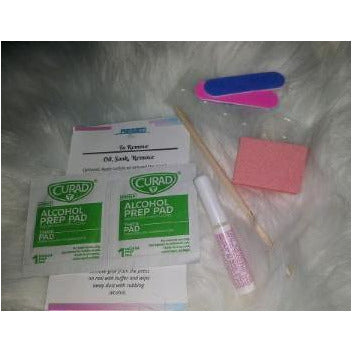 Every nail application kit comes equipped with adhesive, sticky tabs, a nail file, a nail buffer, a cuticle stick, and alcohol pads. These items are provided to streamline your application process.